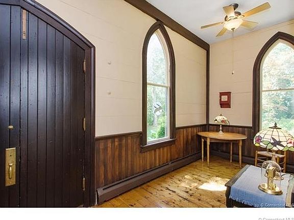 Historic waterfront home in an enchanting setting on the Farmington river. Experience breathtaking views from a house with a unique stone foundation featuring rocks from 49 states. Located conveniently within walking distance to cleared nature trails along the river and access to the Farmington river park. Watch the sunrise from a spacious deck attached to a three season porch. Enjoy fresh breezes in a riverside screened in gazebo adjacent to magnificent perennial gardens. This home has historic detailing and modern amenities. The open floor plan makes it ideal for entertaining. Main floor features original wide pine flooring, exposed wood beams, custom built in cabinets, wainscoting, central air and large brick wood burning fireplace.