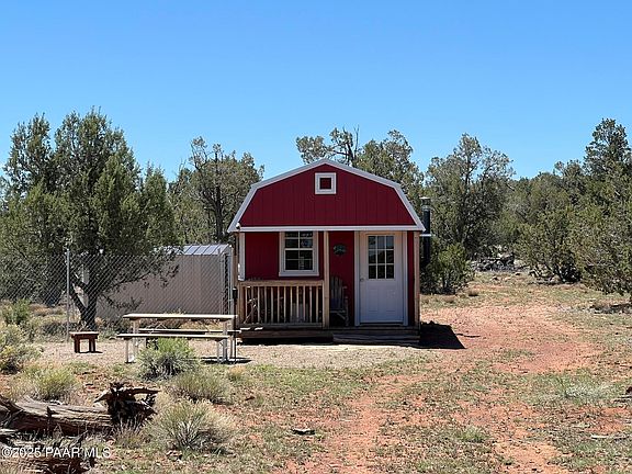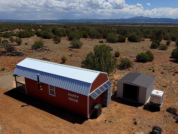 This 40 acre parcel is set up for the weekend get away. There is 30' diameter deck to enjoy the views and relax. The metal shed has a concrete floor and is set up forprojects as well as storage. The 12x40 shed/cabin has a wood stove, a food prep area and is powered by solar. This affordable cabin in the woods is waiting for youand your friends.
