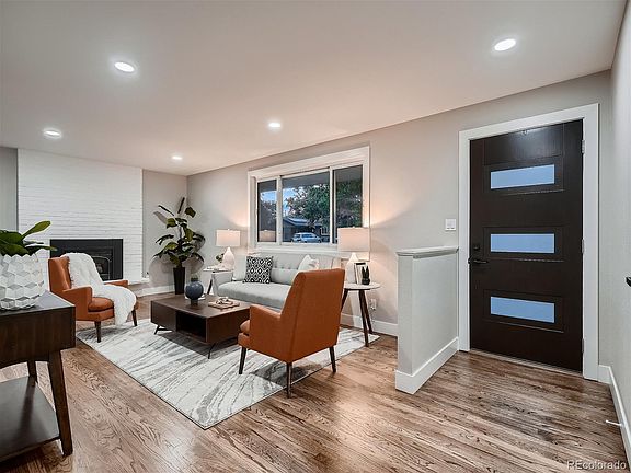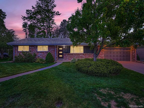 Beautifully remodeled mid-century modern ranch with a lush huge yard in the heart of Littleton. This 5 bedroom, 3 baths luxurious remodel has it by the bucket load. From original and beautifully restored hardwood floors throughout the main level to mid-mod new cabinets with waterfall quartz counters. The main floor features a beautifully appointed living room with a gas fireplace, a formal dining room, a stylish brand-new kitchen, a primary bedroom with an ensuite fully remodeled bath, two other bedrooms, and another bath. Off the dining room through the brand new sliding door is your access to your personal backyard oasis with a large concrete, covered patio, mature trees, and all kinds of flowers, including budding rose bushes. A gardener's dream.