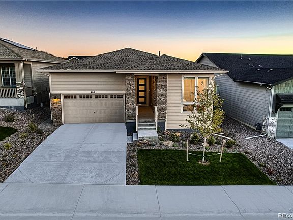 Incredibly upgraded Whitley Modern Ranch from the esteemed Jefferson Collection by Toll Brothers is sure not to disappoint. With a full builder package coming in just under $900k (See supplemental info or reach out to listing agent) PLUS new Hunter Douglass Blinds and an oversized Fridge (after purchase). You will be hard pressed to find any other house with this LEVEL and QUALITY of upgrades in the ENTIRE sub-division! Leathered granite waterfall countertops, to high end cabinetry, extra-tall ceilings & doors, INCREDIBLE EN-SUITE BATH, Floor-to-ceiling Window Walls and extra height 2-car attached garage - this property an incredible opportunity for to move into a new build community without the burden of being surrounded by construction, or waiting for a property to finish being built. 462 Woodroot sits just a few blocks from the community fitness center and pool. This extremely welcoming community provides an array of amenities and activities perfectly suited for all lifestyles. While surrounded by miles of walking and biking trails, this property also sits along a coveted open space, so as to not share a back yard with your neighbor. The views and sunsets from both the great room, kitchen, dining area and back patio are sure to amaze, daily. With two bedrooms (3 if you convert the large office with french doors) and two bathrooms plus a massive 2,000 sq ft basement ready for your personal touches (can add additional two bedrooms and a bath downstairs), this is a must see! **Quick move-in available**
