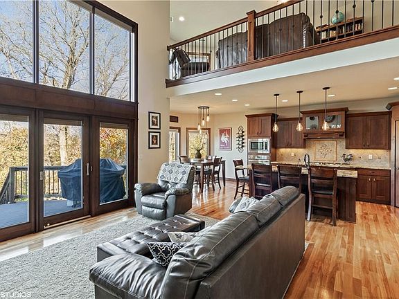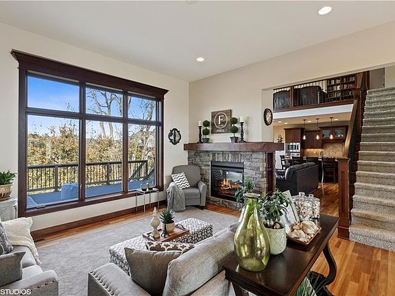 Executive custom 1.5 story home with grand entrance featuring 26' ceilings, double sided fireplace, maple trim, and eucalyptus floors. Over 4800 sq ft of finished living space. Gourmet eat-in kitchen with gas cook top, wall oven, granite, and walk-in pantry w/ large island. Main floor laundry room & mudroom w/built-ins. Spacious master suite with sitting room and dual closets. In addition, there is a guest suite on the main level which could serve as another master suite. Second floor includes 2 bedrooms with jack and jill bath and open loft with window seats. Walk out lower level boasts a full bedroom suite with 3/4 bath, family room with fireplace, and another 1/2 bath. Theater room in lower level is wired and ready for new owners to personalize. Basement is plumbed and wired for a full kitchen. Mature trees and view of pond. Central vac, irrigation, and 2x6 construction, heated tile in master and mudroom. Geothermal with humidifier. Waukee Northwest High School.