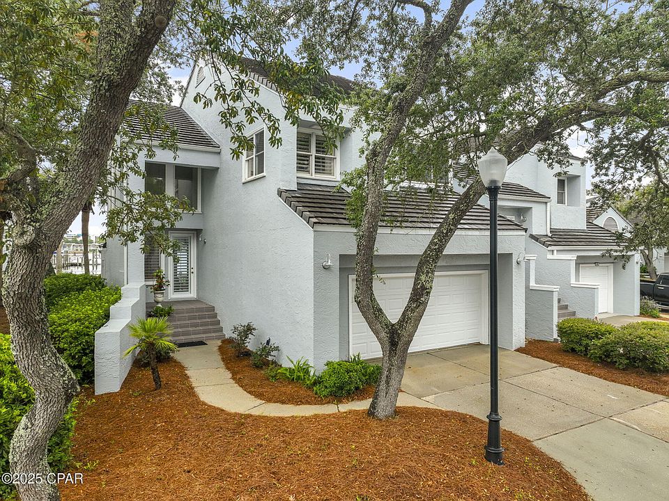 CURRENTLY UNDER CONTRACT, SELLER WILL CONSIDER BACKUP OFFERS. Tucked inside the highly sought-after Bay Point neighborhood, this stunning Marina Club 2-bedroom, 2.5-bath condo offers picturesque water views throughout. The updated kitchen features modern finishes, recessed lighting, a built-in wall oven and microwave, an oversized refrigerator, and a wine fridge perfect for entertaining. The spacious living area includes a half bath for guests, a two-car garage, and a large laundry room. Upstairs, you'll find two master suites, each with walk-in closets, dual vanities, separate showers, and soaking tubs. Enjoy the private upstairs balcony or relax on the gorgeous back patio with a beautifully maintained lawn and sweeping bay views. With a six-year-old roof, this home provides peace of mind. Don't miss this Marina Club condo, it's truly coastal living at its best.