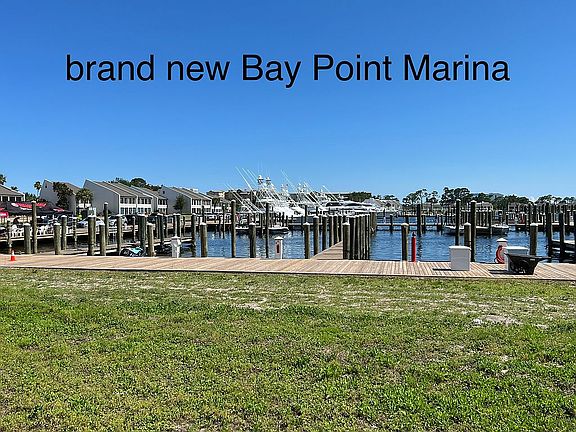 You too can live in one of Panama City Beach's premier gated golf cart communities, Bay Point. Marina Club Village Condo Unit 1034 is spectacularly located literally steps between the brand new Bay Point Marina with available slips, and the one of a kind in North Florida Championship Legends Golf Course and the Bar 72 Golf Club...one of the few in Bay Point with that distinction. Bay Point community is loaded with amenities like the Sheraton Hotel with restaurants, beach grills, bars, tennis, spas and more. The community sponsors many family friendly events such as summer outdoor concerts, the Market on the Meadows, Easter events, Halloween events including a 'Witches Ride' costume golf cart/bicycle parade, Christmas parties and more. Truly a resort community. This condo was renovated after Hurricane Michael and was given a new roof, exterior paint and landscaping in 2019. Additionally the owners did some interior renovations and complete painting in 2020. The stainless Frigidaire Gallery built in kitchen appliances and upstairs carpets were replaced in 2017. The HVAC system was replaced in 2018 with a new Train 16 1/2 seer dual stage system and new water heater in 2019. The condo has two large Master suites, each with large ensuite bathrooms and huge closets, and one with a covered balcony facing sunsets. Downstairs is a dramatic foyer, decks right on the pool deck, beautiful white marble floors in the living room, dining room, kitchen, half bath, & utility room. Additionally there are two more closets and a large pantry as well as an oversized double car garage with room for two more autos on the driveway. The MCV Association fee is $802 monthly and includes exterior insurance coverage and maintenance, pool and lawn care, garbage pick up, pest control, basic cable, and security. Bay Point Community also has an annual fee of $1300 for road maintenance, lighting, guard security at gates and patrols, etc. Condo is sold "as is". Most condo furnishing, some original art, and the new washer and dryer are available under a separate contract. The best of resort living at the beach can be yours.