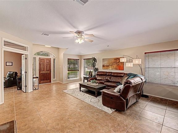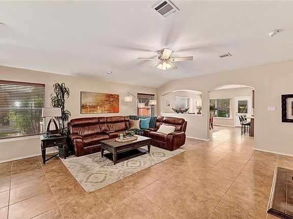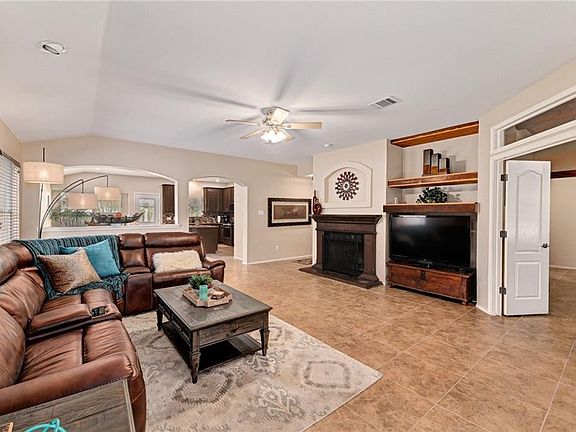 This beautiful home features 3 spacious bedrooms and a bonus office/4th BR. Large living area opens to kitchen with island, new appliances and dining area. Tile floors, new carpet in secondary bedrooms. Gas fireplace, high ceilings, lots of natural light, huge master, garden tub, separate shower, dual vanity and huge closet. Backyard has covered patio. The roof & a/c have been replaced, sprinkler system, back side of house has soundproof windows. Area amenities: pools, trails, playgrounds, & greenbelt.