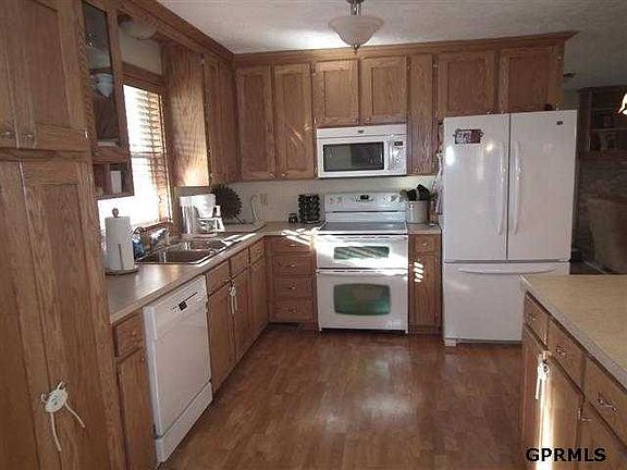 Nice ranch home completely remodeled in 2008 with 3 BR, 2 BA & 1,400+ FSF. Open floorplan has living rom with FP & built-in shelves, dining rm & kitchen with pantry, newer appliances & island with breakfast bar. New roof in 2012, newer A/C, laundry rm with sink, covered front porch, large crawl space & tornado shelter. Large lot with fenced yard, mature trees & storage shed. Affordable home in Lakeland, a gated community between Blair & Omaha. $280/yr assessments cover street & lake maintenance.