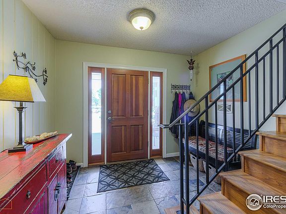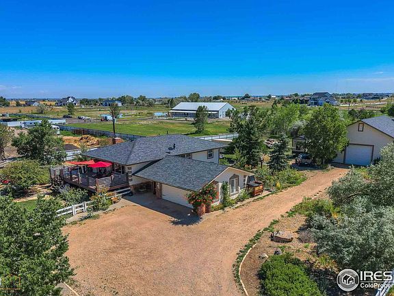 Looking for a beautiful and peaceful sanctuary with amazing mountain views? Then come see this awesome, well maintained and loved 3.5 acre property in Erie with the luxury of no HOA! With multiple beautiful stone patios and walkways, you will find yourself sitting every day on the trex deck enjoying the beautiful views while also listening to the waterfall pond. Fabulous updated home with laminate flooring in the kitchen, living room and dining room. A cooks dream with Bosch stainless steel appliances, granite countertops and cherry cabinets. With 5 bedrooms/2 bathrooms, there is plenty of room for everyone as well as work from home opportunities. Enjoy entertaining in the large downstairs family room, complete with wet bar and free standing fireplace which can heat the whole house. Not only is there a two car attached garage but an oversized 30 x 40 detached garage with office area, rough in plumbing for 1/2 bath, gas line and 200 Amp service. New roof in 2020, newer exterior paint, newer hot water heater. Furnace and a/c will be replaced before closing. Septic is for 5 bedrooms and water is on a shared well agreement. Well rights go with the land. City water tap not included but water line extends to the property. On a dead end street, this is quiet country living at its best with the finest Front Range mountain views!