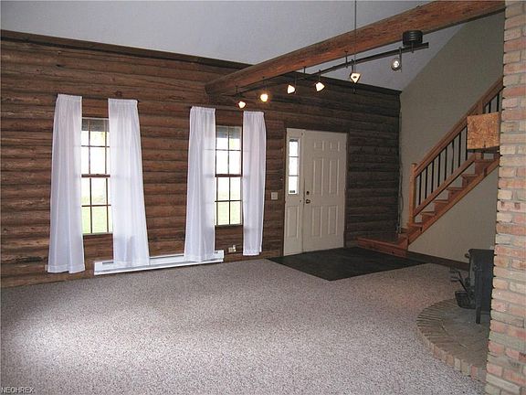 Desirable Log Home located on a 1.26 acre scenic, wooded lot, 5 bedrooms, 3 baths and 2 car garage. Home features an open floor plan with vaulted ceilings in the living & dining area. Custom Kitchen with breakfast bar. Lower level is great for entertaining! Large recreation room with exercise & hot tub/spa room, a wet bar, bedroom and full bath that opens to a lower deck. Wood burning stove on both floors. Large deck with beautiful views overlooking a wooded ravine.