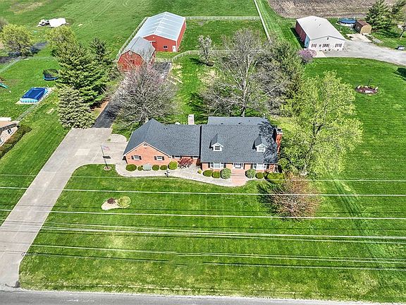 Classic Bi-Centennial all brick, 4 BR Cape Cod on 5 acres with barn and arena in the Mt. Zion School District! Same owners since 1995. Side load garage. Roof 2020. Replacement windows. Kitchen with breakfast room featuring a built in corner hutch. Both the back family room and the side living room boast fireplaces. There is a convenient laundry/mud room with 1/2 bath off the back door. Main floor master and 3 spacious bedrooms up, 1 with its own bath and walk in closet. 1 bedroom has a "readers pad" and one has built in shelves and a desk. Great storage throughout. The barn has 4 stalls and is heated and has a well.
