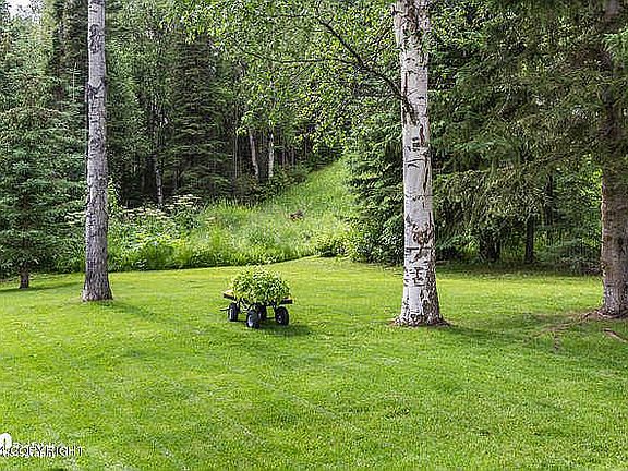 What a wonderful location! The serene forest and stunning landscaping give you an enhanced sense nature in the lush park-like setting. Ideal location provides quick access to recreational area, hospitals, schools and sought after amenities. The seller commissioned renowned Lazure artist, Robert Logsdon, to paint the living areas. The Lazure method is a creative and conscientious use of colors. Additional features include two separate security systems with battery backup, motion sensors, multiple advanced security cameras, reinforced doors and windows, active Community Watch Program with regular police patrols. Yard is expansive and perfect for large dogs, plus new indoor dog washing station. Wired for Ethernet. Excellent aurora viewing over private valley. Lovingly maintained.