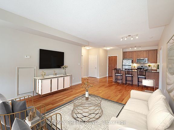 Large 2 Bedroom + 2 Full Bathrooms in the Heart of Woodbridge! Boutique Style Condo. 1045 sq.ft. Open Concept Living Space Perfect for Entertaining. 9ft. Ceilings & Large Windows for Natural Lighting. Fully Equipped Kitchen with Granite Countertops, Breakfast Bar, Stainless Steele Appliances, and Plenty of Cupboards. Only 3 Units Down from Elevators. 1 Underground Parking Spot, Locker and Plenty of Visitation Parking. Building Amenities Include Gym, Party Room for Friends/Family Gatherings. Enjoy the Serene Environment of the Beautiful Landscaped Gardens with Private Courtyard Garden, Terrace & Pergola Seating Area! Just Steps to Medical Suites. Close to Restaurants, Shopping, Parks, Schools, Recreational Facilities. Mins. to Hwy 7/400/407 and Public Transit.
