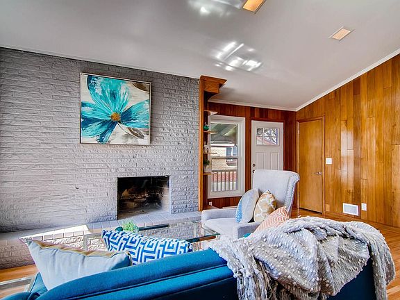 This fabulous Mid-Century Built in 1953 and Refreshed with Modern Updates say's welcome to the new age while keeping Modern charm and architecture. Located in the heart of Wheat Ridge this home welcomes you with a breath taking wall of windows, vaulted ceilings, exposed brick, natural wood fireplace, beautiful wood work throughout, newly refinished hardwood floors, new windows, a stunning kitchen with subway tile back splash, white cabinets, quartz counter tops and all new stainless steel appliances. Both bathrooms are tastefully finished with new tile floors, shower, vanity and fixtures adding just the right amount of color and charm. The lower level is bright with a wood burning fireplace, egress window in the bedroom, walk out access engaging to a large yard and beautiful mature trees. Two covered decks and the lower level patio area provide the perfect combination for summer entertaining!