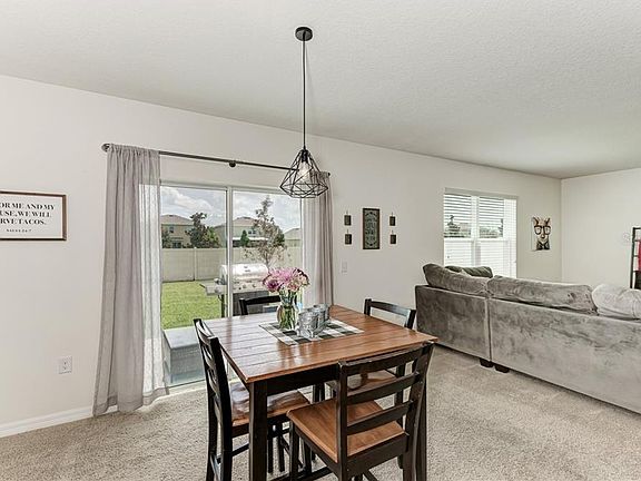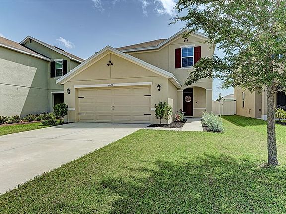 This lovely two-story home located in Willow Walk is waiting for you. Upon entering you will notice the spacious floorplan that is perfect for entertaining. Downstairs includes a large living, dining, and kitchen area with high ceilings and open concept that make it ideal for hosting. The kitchen design with its large center island is the focal point of the home. It's upgraded features include granite countertops, expresso stained cabinets, stainless appliances, and modern light fixtures. A conveniently located half bath, fenced back yard and plenty of storage/pantry space complete the first floor. The second story is where you will find the owner's suite that includes a large walk-in closet and ensuite bathroom with dual sinks and raised countertops. Two additional bedrooms share a full bath. Other perks include; upstairs laundry (washer dryer included), two-car garage and hurricane shutters. Builder's warrantee still in place. Willow Walk is a premium community located within minutes of the Ellenton Premium Outlets, 1-75/275 & US-301. It features many amenities including a large pool, pavilion, and playgrounds.