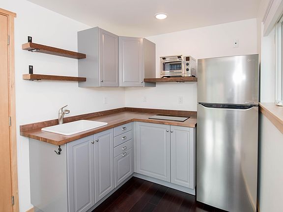 This beautiful 460 sq ft 1 bedroom, 1 bath home has a spacious elegant feeling - an open living room with high ceilings, tall windows for plenty of natural lighting, kitchen with all new appliances (stove, convection toaster oven, refrigerator/freezer), and new bathroom with a beautiful tiled shower. The spiral staircase leads to an upstairs bedroom overlooking the living room below. French doors open out to your own private patio. Convenient shared laundry room on-site (no additional charge), extra storage, and outdoor common space. (see below*) *$100/mo will be refunded through August 2021 until bathroom sink is installed -Garbage and all landscape maintenance included -1st and last month's rent required, plus $1000 refundable security deposit -Cats considered with additional fee (sorry no dogs) -Renter's Liability Insurance in the amount of $100,000 required -No smoking allowed -Tenant pays $125/mo for electricity, water and internet