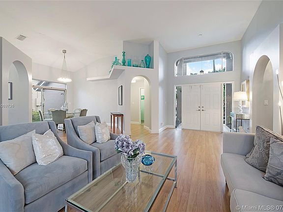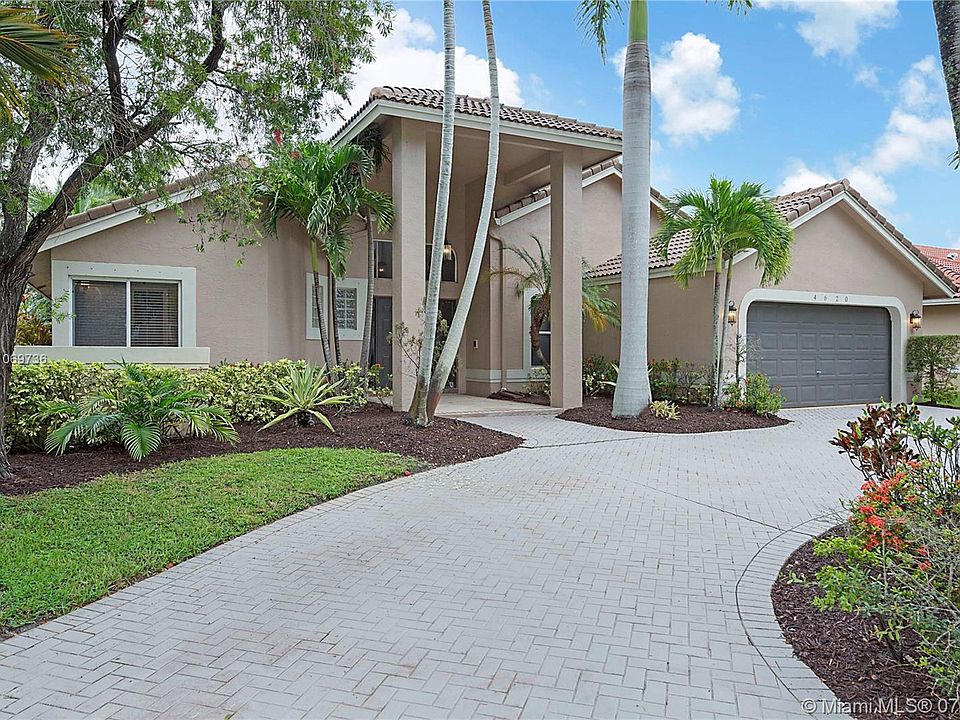 Beautiful 4/2.5 pool home tucked away on cul-de-sac w/ large circular driveway & plenty of parking! The dramatic covered entry leads you to your front doors & as you enter the home you are greeted by the vaulted ceilings & natural light. This spacious split bedroom floor plan has the perfect layout for entertaining & privacy. The master suite encompasses the south side of the home featuring dual walk-in & linen closets. The luxurious en-suite master bath features upgraded cabinetry w/ dual vanities, private WC & glass enclosed shower lined w/ marble. The open kitchen w/ granite counters w/ island overlooking the breakfast nook, family room & pool area. Upgraded cabana bath leads you outside to private pool area. Roof 07. Hurricane Shutters. 2 A/C's. Walk-able to parks, schools & much more!