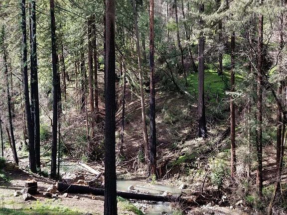 Towering redwoods and Zen garden details with many paths/walkways. Enjoy the log cabin look and feel of this well cared for home on approx 6 acres with year round creek. Lush Forest views from the large deck give you a calm place to relax in near total seclusion but you are only minutes from town. If you would like to hear the daily sounds of flowing water and wind in the trees this home is for you.