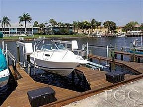 Beautiful furnished (turnkey) Gulf access condo, western exposure, overlooking 200' wide Rubicon canal, 2 bedrooms/2 baths, high quality tiles throughout, boat dock and boat lift, nice common pool area, second floor, 6 units in building (3 buildings total), new water pipes, new appliances, new air condition, cathedral ceiling, sunny and bright, low association fees.