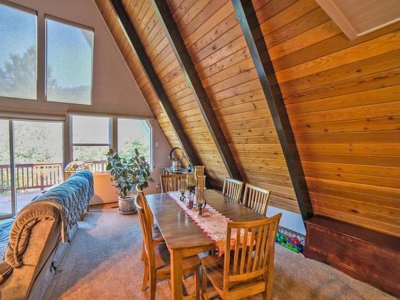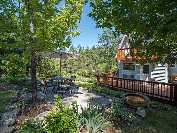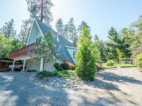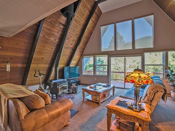 If you're looking for peace and privacy check out this lovely A-Frame in the Applegate. The property borders BLM land, has amazing views and beautiful tall evergreens. The home has been lovingly and extensively remodeled over the past five years. Quality and character can be found throughout the home. New vinyl windows. The main living area consists of an open living/dining area with wonderful vaulted tongue and groove ceiling, lots of light with floor to ceiling doors and windows. The cert. wood stove adds a cozy and comfortable lodge feeling. Deck off the living room. The kitchen has custom cabinets, SS appliances, 5 burner gas cooktop, convection ovens, breakfast nook. Full bath. Bedroom with office area. Laundry area. Upstairs you'll find the master bedroom and bath w/ open bean ceiling, walk-in closet and balcony Built-ins for extra storage. There is a bedroom and bathroom on the garage floor level perfect for guest. 17 gpm well per seller and back up generator.