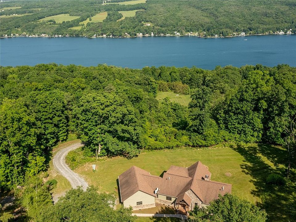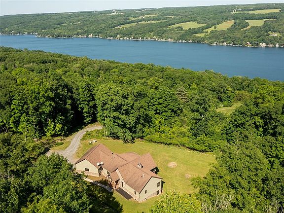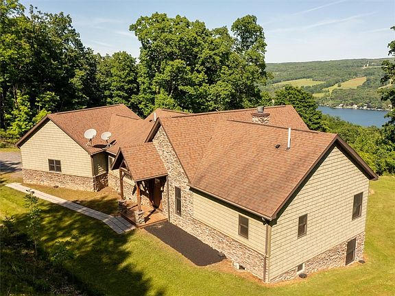 Exquisite hybrid Post and Beam Ranch on 18 beautiful acres overlooking the Eastern branch of Keuka Lake. Custom built by Martin Contruction in 2012 highlights the Mennonite craftmanship. 3 bedrooms. 2.1 baths. 1st floor primary suite with full on suite bathroom and walk-in closet. Great room with 16ft timber framed cathedral ceilings and stone woodburning fireplace. Cherry kitchen w/quartz countertops, cherry cabinets, breakfast bar, and wide open to great room and dining area. Acacia wood floors throughout the 1st floor. Geothermal heating and cooling make for green living and low utility bills. oversized 2 car attached garage. Fully finished walkout lower level. Breathtaking views of Keuka Lake and the surrounding Eastern valley from almost every room. 18 Acres includes woods, brush, a small pond and an old vineyard that all make for good hunting grounds.