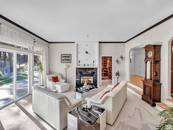 Take a tour of this awesome home. Step into the dramatic formal living room with a wall of windows showcasing the blend of soaring pine trees and beautiful landscaping. The opposite wall has an eye catching custom clock and gas fireplace. Adjacent to the living room is an exquisite library featuring built-in shelving and a dual-sided fireplace that seamlessly connects the library to the elegant living room. Across the wide hall is a large office with a gas stove., Down the hall from the office is a spacious formal dining room with stunning tray ceilings. The dining room has ample space for a long table and is perfect for large gatherings of family and friends. There are spectacular views out of every window in this lovely home. The primary suite provides direct access to the serene backyard and features two walk-in closets and an additional gas fireplace. The ensuite bathroom has dual sinks, a shower stall, and a jetted tub for ultimate relaxation. There are three additional large bedrooms. This home has two full baths and two half baths (one being in the garage). In addition to the four bedrooms, there is a bonus craft room that can easily serve as a fifth bedroom. The bonus room has a gas fireplace, a free-standing island, a closet and lots of cabinets. There is an expansive great room comprising a kitchen area, a breakfast nook and a family room. The spacious kitchen is a chef's dream: white appliances, granite countertops, a large island bar, a four-burner stove, double ovens, significant amount of cabinets and counter space, pantry area and a dumbwaiter that comes up from the garage. The kitchen flows effortlessly into the inviting family room with its cozy fireplace and breakfast nook. An oversized garage easily accommodates four cars. An additional interior climate-controlled garage is perfect for a workshop or hobby space. A dumbwaiter is conveniently located in the garage to deliver groceries and other items to the kitchen. Home also has a new roof which was replaced in 2023. Nestled on an expansive lot backing to the beautiful mountain hillside, the property boasts beautiful mature trees, extensive hardscape with natural and artificial grass areas, a large shed equipped with power, exterior water, a side door, and a garage door providing easy access for larger items like ATVs. A perimeter chain link fence surrounds the backyard (almost two acres). This property provides unparalleled privacy. Don't miss the chance to own this exceptional home in one of Carson’s most prestigious neighborhoods. Lakeview has the feeling of Tahoe yet it is within minutes of the regional hospital, downtown Carson City with all of its events, restaurants and shops plus it is an easy commute to Reno and the Reno-Tahoe International Airport. This location is a short distance to backcountry trails to Hobart Reservoir or Marlette Lake, as well as great mountain biking trails. This could be your dream home!