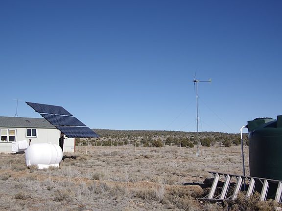 Beautiful turn-key off the grid mini ranch on 40 fenced acres. Shows pride of ownership. Modular home looks nearly brand new! Large drive thru carport area with workshop. Borders state parcels on 2 sides. Large deck full length of home.Too many extras to list. Must see for anyone wanting to live a secluded, self sufficient life. Wildlife in abundance: antelope, elk, javalina. Solar with back-up wind and gas generator. Tractors stay with property.