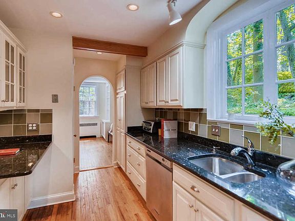 From the moment you approach this classic English manor house the seduction begins. You notice the charming architectural details from a bygone era, original hardwood floors and beautiful wood burning fireplace, built in book cases and china closet, chair rails, and lovely arched doorways. The kitchen retains its charm but boasts such modern amenities as upgraded stainless steel appliances, glass tile backsplash, and granite countertops. Upstairs you will find three generous bedrooms and a beautifully updated full bath featuring classic subway tiles and marble flooring. The basement offers a newly painted and carpeted bonus room, laundry room and full bath. But the true beauty of this home is the secret garden. There is a large patio overlooking the expertly manicured back gardens featuring a beautiful waterfall and fountain, landscaped terraced gardens, detached garage, all securely encased within classic french black iron fencing. The sounds of the waterfall and the birdsong, mix with the aroma of the beautiful flowers and suddenly your realize the stress of the day has melted away. No matter the season, the gardens do not disappoint. The house faces the beautiful Gwynns Falls/Leakin Park offering endless opportunity to enjoy the natural beauty that abounds in every direction. This property is located in the historic district of Hunting Ridge. The location is amazing, close to downtown Baltimore and with direct access to MARC via West Baltimore/Halethorpe for DC commuters. The owner has taken meticulous care of this beautiful home: newer roof, copper gutters, brand new hot water heater, brand new chimney inspection with new steel liner, updated washer/dryer-home warranty more!