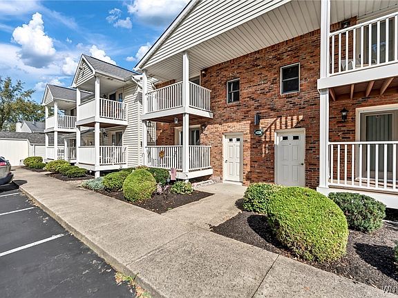 This affordable 2nd-floor condo is in an unbeatable location and priced to sell! With 2 bedrooms and 1.5-baths, this home is in a highly-rated Town of Amherst school district, and is close to shopping, dining, and the University at Buffalo's North Campus. A large, carpeted living room/dining room combo has glass doors to a covered balcony, providing quiet and private outdoor space. The fully-applianced kitchen has a new, stainless steel bottom freezer refrigerator. Full bathroom was renovated last year with a new vanity and granite top, tiled tub surround, and brushed nickel fixtures/hardware. The primary bedroom has a half-bath ensuite and good sized closet. The full, private basement has laundry and ample storage, including custom made closet space. Updated furnace, central A/C, and HWT. Condo includes a one car, detached garage space (#3) with power opener and one dedicated outdoor parking space (#7) directly in front of the unit. HOA is $239/month. No Pets Allowed. Units are rentable, but on wait list as the association is currently at maximum capacity of their cap. Open house Saturday, 10/5 11am-1pm. Any offers to be reviewed, Thursday 10/10 at 2pm.
