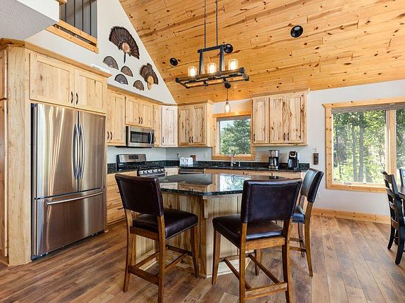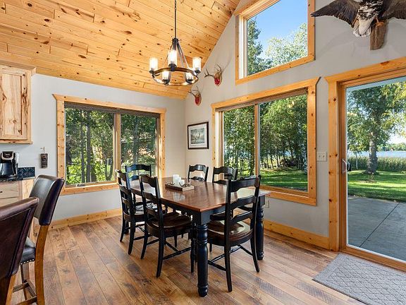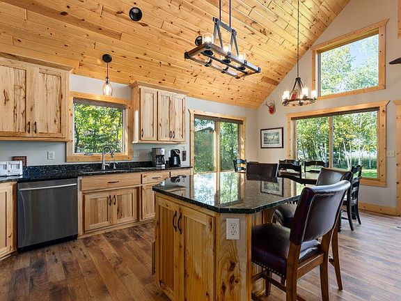 Inguadona Lake; Dream Home Quality Chalet! Immaculate throughout, the main level features, 2 Bedrooms, 2 Baths, plus the Kitchen/Dining/Living/Fireplace in the Great Room under vaulted Knotty Pine ceilings. Easy "at grade" entry from the outdoors or the double attached garage with the Utility/Laundry area as a transition before entering the Great Room and its upper story windows, all facing due west into the sunsets. This "Cooks Kitchen" is extremely functional, and decadent, with its Granite Counter Tops, Stainless Steel App, inc a 5 burner gas stove, a Central Eating Bar, all with Rustic Hickory Cabinets, plus a formal dining, all overlooking the Lakescape. The patio door draws you out to a 14x23 stamped concrete sitting/picnic area, then to the waters edge, w/perfect gentle elevation to an exposed sand beach, and a roll in dock. 24x28 att Dbl Gar+ a det 26x38 Toy Gar w/heated shop or office. All impeccably clean, well organized, and cared for. Public land trails nearby.