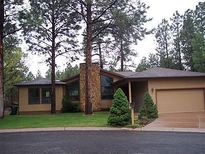 All new Price!! Location & Curb Appeal. This custom built home sits on a large lot full of mature pines with wonderful views of Mt. Elden. Located in the back of the Cul-de-sac. This house was built right the first time, you don't need to remodel. Enter this home to the open Great room with it's vaulted wood ceilings, hard wood floors masonry fireplace solid cherry cabinets. Single level 3 bedroom 2 1/2 bath. Very bright and open. Master bedroom is huge, with walk in closet. Loads of storage and closet space.The house has extra large deck with cabana for entertaining your guests.Don't forget that the house comes with all the CCC amenities.Tennis,swimming pools,exercise area,and BearPaw recreation center for the kids