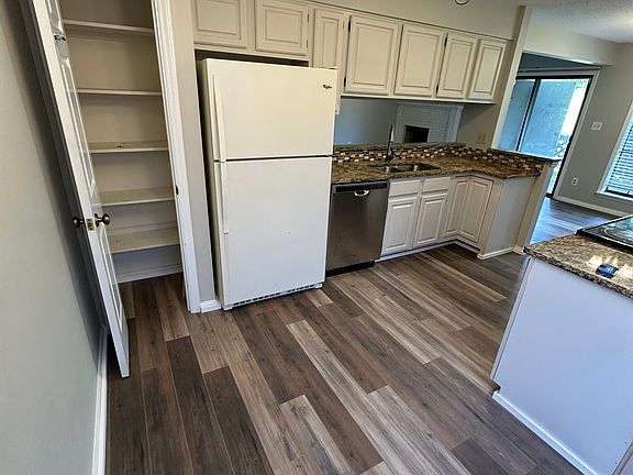 Nature lovers dream! Recently renovated 2 BR, 2 BA ground level walkup unit in a quiet neighborhood with new flooring throughout, updated bathrooms and kitchen. New ceiling fans, stainless steel smooth top electric oven, stainless dishwasher and hood fan. Granite counter tops. Features separate dining room and eat-In kitchen. Covered porch and 2 outdoor storage rooms. In-unit washer and dryer. Well behaved pets allowed for additional deposit and $100/month pet fee.