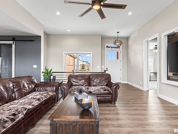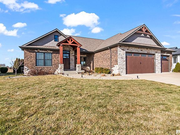 Expect to be impressed by this one of a kind custom built 4 bedroom, 3 bath ranch tucked on a quiet street backing to open field in sought after Panther Creek West. Enjoy stunning sunsets from the beautiful outdoor living space featuring a large covered maintenance-free deck with access from both the kitchen and primary suite, plus an open concrete patio, lush landscaping, and fenced backyard. Inside you’ll love the open floor plan with elevated ceilings and 8 foot doorways throughout. The custom kitchen offers a large walk-in pantry and flows into the main living area. A convenient drop zone off the 3 car garage and a spacious laundry room with direct access to the primary walk-in closet add everyday functionality. The private primary suite is a true retreat with a spa-like bath featuring a freestanding tub, oversized tile shower with four shower heads, dual vanities, and makeup area. Two additional guest bedrooms and a full bath complete the main level. The finished lower level is built for entertaining with a large family room, impressive wet bar, fourth bedroom, full bath, and plenty of storage. Move-in ready and includes kitchen appliances, theater TV, bar TV, soundbar, barstools, Nest thermostat and doorbell, and zoned custom LED lighting. Located in the Chatham School District. Panther Creek is a golf cart community with optional country club membership offering golf, tennis, pools, fitness, dining, and social events.