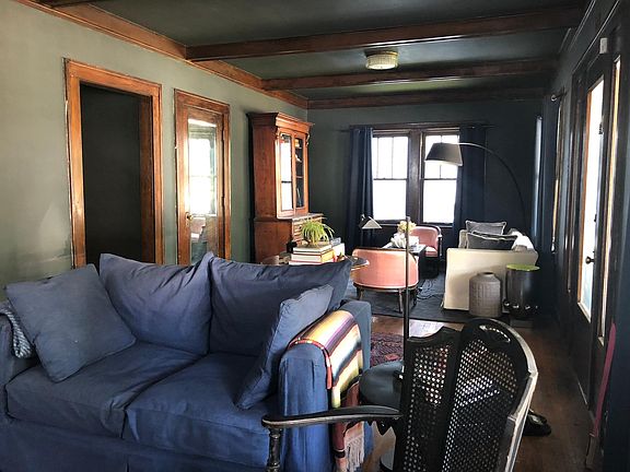 Upstairs artist loftFenced in backyardPreserved period detailsHome officeLarge front porchString lightsVintage kitchen island