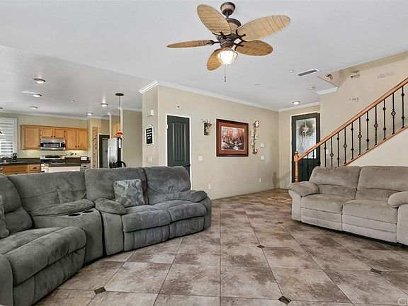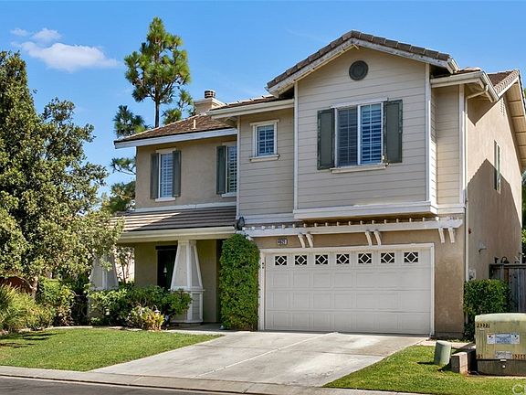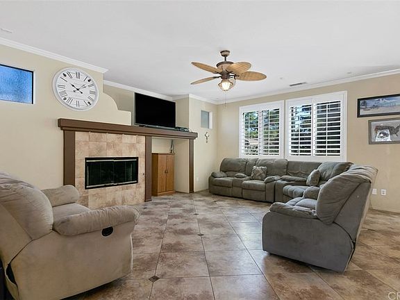 This charming two story home with a beautiful custom entry door is located in the desirable gated community of Tiburon in Riverwalk. The home is situated on a corner lot and has 4 bedrooms and 2.5 baths. Main floor has an open concept kitchen with a center island and stainless steel appliances. Family room has a cozy fireplace and crown molding and there is also a ½ bath on this level. The upstairs offers a large master bedroom with an en suite bath including a separate shower, tub, dual vanities, and a walk-in closet. There are three additional bedrooms upstairs and a full bath in the hallway. There are shutters through out the house. Beautifully landscaped backyard has artificial turf, custom retaining wall, mature trees in addition to a built in gas fire pit perfect for gatherings with family and friends. HOA amenities include pool, park, kids playground, basketball court and walking trails. With easy access to the 91 freeway, this community is conveniently located near the La Sierra University, schools and shopping. A must see!
