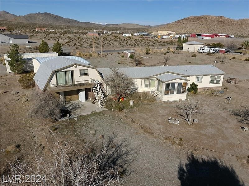 This property in Pahrump offers a unique investment opportunity with its stunning mountain views and expansive 6.65-acre lot. The main house features 3 bedrooms, 2 baths, a sunroom, and a spacious 1725 sq ft layout. Additionally, there's a separate 720 sq ft living space loft with an attached 420 sq ft garage and bathroom, providing versatility and potential for various uses. One standout feature is the huge breezeway connecting the main house, garage, and additional loft, enhancing convenience and accessibility. The property also boasts a sizable 1200 square foot garage with RV parking, catering to those with recreational vehicles or large storage needs. With a fully fenced yard, included appliances, and no HOA fees, this property presents an attractive package for potential investors or homeowners seeking space, comfort, and flexibility. Given its appealing features and prime location, this property is likely to generate significant interest and may not remain on the market for long.