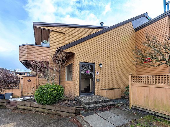Vaulted ceilings in the living room, and a 30 foot patio are unique features in this 2 bedroom, 2 bathroom top floor condo unit. No neighbours beside or above. Bedrooms are large. Mountain views from living room, sundeck, and both bedrooms. A secure storage room in front of a covered parking stall. Extra parking is available. Large garden area on the east side of the property, ideal for relaxing and letting the pets off leash. 2 pets are allowed. 18 inches max at the shoulder. Both cats and dogs are ok. Easy to show.