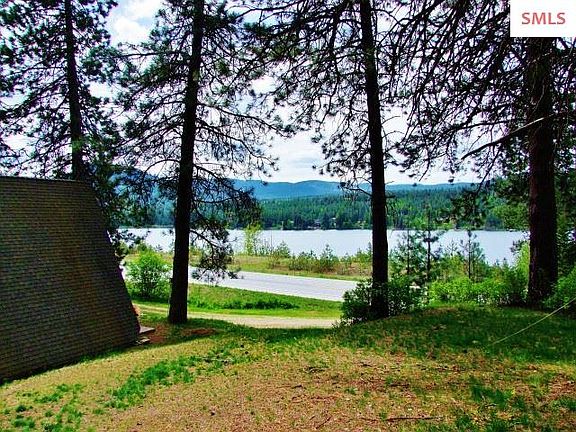 Charming, classic A-Frame home located just south of Sandpoint with beautiful water views of Cocolalla Lake! 970 sq ft with many updates and renovations done in 2007/08 including a new roof, siding, laminate wood flooring, all new kitchen and bathroom wooden cabinets, tile flooring in the bathrooms, new plumbing, appliances, vanities, paint and much more. Large master bedroom with vaulted ceilings, 1/2 bath and a private balcony. Open living room/dining area with a galley style kitchen and a full bath/laundry room on the main level. A beautiful setting on a .61 acre lot with huge old growth Ponderosa Pines, amazing lake and mountain views with easy access right off of the highway. Private Well and septic, no CCR's.