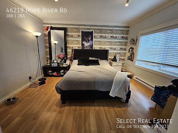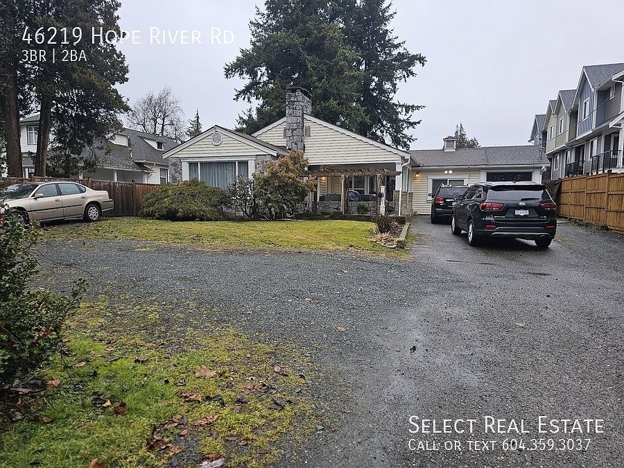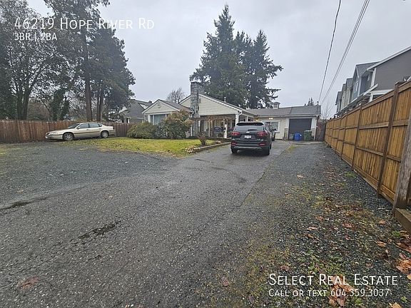 Address: 46219 Hope River Road, Chilliwack, BC V2P 3P3 (Fairfield Island) Date Available: April 1st, 2025 Description: Welcome to your new home! This is a 3 bedroom, 2 full bathroom home with an open kitchen w/ S/S appliances, wood cabinetry & access to outside and a spacious living room. There is a large master bedroom w/ his & hers closets & sitting area w/ French doors opening to the private backyard. There is an unfinished basement for storage or any other ideas. On site there is a 27'1 x 15'3 detached WORKSHOP and tons of Parking! Very private backyard w/ huge partially covered sundeck, gardens & mature trees. Lease Details Lease duration: 1 Year Deposit: Months Rent. Pet Deposit: Months Rent if applicable No Smoking Property Details Bed: 3 Bath: 2 SQFT: 2017 Pet Details Pets(Yes/No): Upon approval Type Allowed: N/A Number: 1 Size Restriction: N/A Exterior Details BBQs allowed(yes/no): Yes Parking type and how many: Driveway + Garage (6 spaces total) Yard Usage: Private Yard Yard fully fenced: Yes Shed Or Shop Usage: Yes Appliances Included Fridge: Yes Range: Yes Dishwasher: No Microwave: Yes Washer/Dryer: Yes Shared Laundry: No Pay Laundry: No Fireplace: Yes - Does not Work Air conditioner: No Standalone freezer: No Utilities Gas: 100% Tenant Hydro: 100% Tenant Internet/Cable: 100% Tenant Water, Sewer, Garbage: 100% Tenant Utility Type Heat Source: Forced Air & 1 Baseboard Heater in Front Room Septic/Sewer: Sewer Water Source: City Tenant Responsible for Septic pumping: No