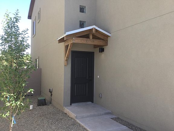 We pay all utilities! Welcome to Casas Solaris, an absolutely stunning GREEN-BUILT, Net-Zero housing community in the Rio Grande Valley. Nestled minutes away from Old Town, shops, and restaurants, this exciting high-end home is luxury living at its best. Corner end unit offers great privacy. This gorgeous 2-Story Northern New Mexico style townhome has 2 bedrooms, each with their own on-suit full bathroom and one with a walk-in closet. Stunning bathrooms with stone pedestal sinks from Bali and beautiful wood tile in shower/tub. 9-foot vaulted ceilings provide for a warm, open, inviting feel throughout. Glamorous kitchen with high-end granite, all stainless-steel appliances and custom bamboo cabinets. A pantry, coat closet and linen closet all provide for ample storage space. Washer/dryer included in unit. Attached 1- car garage offers 2 parking spaces. Centrally located guest/half-bath. Living area opens to the kitchen and flows seamlessly into the backyard. Camera security system and fruit trees for you to enjoy.