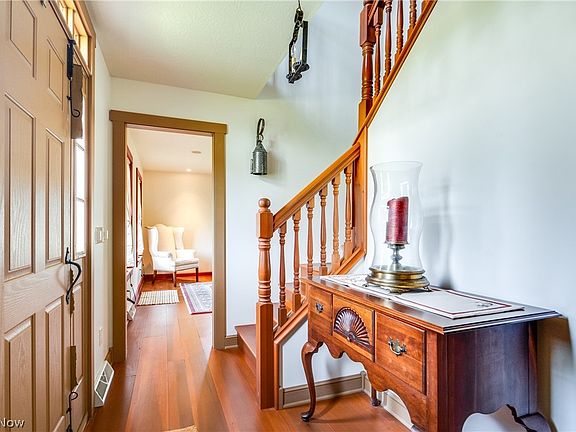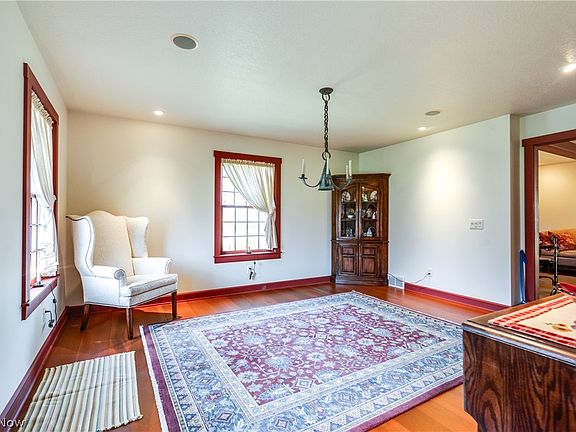 Welcome to your dream home nestled on a sprawling 1.97-acre lot. As you enter the entryway, you're greeted by a foyer. To the left, a living room adorned with hardwood wide plank poplar flooring welcomes you, complete with one of three cozy wood-burning brick hearth fireplaces. On the right of the foyer, discover a versatile office space adorned with built-in shelving. Continuing through the main level, a generously sized family room beckons, seamlessly flowing into a dining area illuminated by natural light streaming through double French doors. The kitchen boasts Corian countertops, an abundance of Cherry cabinets, stainless steel appliances, and a breakfast bar. For added convenience, a mudroom off the kitchen leads to the garage and a first-floor laundry room. Rounding out the main level is a full bath. Upstairs, discover two spacious bedrooms, including a luxurious master suite retreat featuring its wood-burning fireplace with a brick hearth. The master bathroom offers a vast walk-in closet and a tub/shower combo. Descending to the basement, you'll find a versatile space perfect for entertaining or more space for guests. A sizable rec room provides more space, plus a convenient kitchenette. The basement also features a carpeted bedroom with closet space and an additional full bath. Outside, the natural beauty of the surroundings beckons, with lush trees enveloping the property in privacy and tranquility. Five garage spaces, including a 2.5-car attached garage and a three-stall detached garage, provide abundant storage for vehicles and equipment. Outbuildings include two sheds and a chicken coop. Step onto the back deck and relax under the pergola, savoring picturesque views of the expansive backyard. Don't miss your chance to see this beautiful home; schedule your showing today!