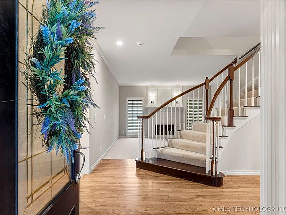 RARE opportunity on a tree-lined street in the desirable South Tulsa gated neighborhood of Ashton Woods, beloved for its charm, park, walking trails, and close proximity to Whole Foods, local restaurants and retail, plus quick and easy access to the Creek Turnpike. This beautifully updated 3,501 square foot residence features a newer roof (2023), fresh interior paint, new designer lighting, updated powder and primary baths, plus an updated kitchen with marbled granite counters and high-end Bosch appliances. Fantastic floor plan has a formal living, formal dining, den open to kitchen and breakfast nook, powder bath, primary suite, and laundry room on the main floor; large game room, three spacious bedrooms and two full bathrooms located upstairs. Each additional bedroom also includes its own walk-in closet, and a large floored attic ensures you’ll never run out of storage. The fully fenced yard features covered outdoor living space, an extended flagstone patio, and a nice-sized yard with mature shade trees and established landscaping. Located within the highly desired Jenks school district.