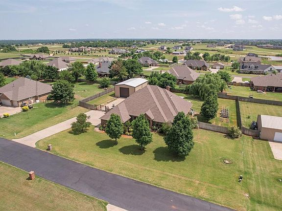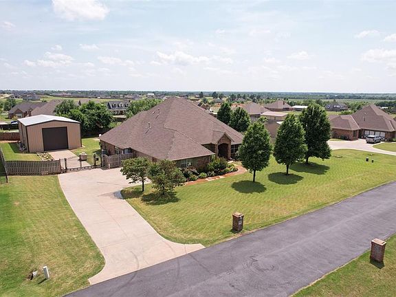 Welcome Home to The Summit! Spread out and live large in this well kept estate that offers space just outside of town, but not too far! This 3,055sf home sits on a 0.84 acre lot and has a 30x50 powered shop that sits on a concrete slab. Ready for pool season? This home has a pool with a hot tub and tanning deck that was built in 2020. It is heated and outfitted with the Aqua Link system so you can control it from your phone. As you enter the home, you will find a large formal dining room to your left and the main living room in front of you. The flooring throughout the main common area is engineered hardwoods. The kitchen is right off the main living room and feature granite countertops, freshly painted cabinets and a 36" gas cooktop and stainless appliances all by Kitchen Aid. As you wander through the kitchen, you will see the dinette that overlooks the backyard and pool. Continue on and you will pass the laundry room and then enter the 2nd living room followed by a guest room, a flex space that can be used as an office or bedroom and a full bathroom. On the opposite side of the home you will find the front guest room that features a walk-in closet that is also a built-in safe room. This room also has its own hall bathroom. In the back of this wing is the primary bedroom. This room is oversized and has space for a seating area. The en suite bathroom has dual vanities, makeup vanity, walk-in shower, large bathtub, water closet and a walk-in closet. This home is located in the highly sought after Deer Creek school system. It is 10 minutes from the Oak Tree Golf Course, 20 minutes from Crest Foods, 20 minutes from downtown Edmond and 40 minutes from downtown OKC and Will Rogers. Few key updates: New Well, New Roof, New Hot Water Tank, New Whole Home + Pool Generator, New Septic Lines, 2 New Furnaces and 1 New AC Unit.