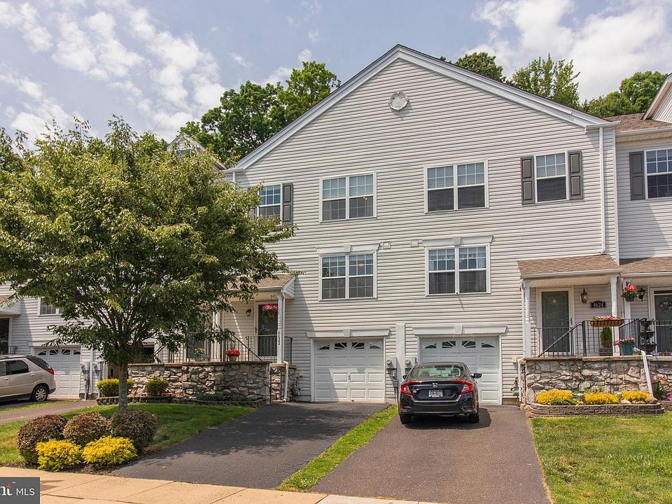 Beautifully maintained townhome located in the highly desirable neighborhood of Patriot~s Ridge! Step through the front door and notice the chair rail, neutral decor, and hardwoods throughout the main floor. The eat-in kitchen features updated appliances, hardwood flooring, gas cooking, ceiling fan, and sight lines into the main living area. Making your way through the home you~ll find the open concept dining room, also featuring hardwood floors, and views into both the living room and kitchen. The bright and airy living room is complete with a stone front gas fireplace, ceiling fan, built-in shelving, and tons of natural light pouring in from a large window and sliding glass door that leads to the back porch. A half bath with a linen closet completes this level. Upstairs is home to three bedrooms, all with plenty of natural light, plush carpeting, ceiling fans, and ample closet space. The master suite features two walk-in closets and attached bath complete with a vanity area. The finished basement boasts updated flooring, recessed lighting, separate laundry room and access to the garage. This home backs up to a wooded area giving you the privacy you desire with the convenience you require! All of this and more within the award winning Central Bucks school District. Make 4622 Louise Saint Claire Drive yours today!