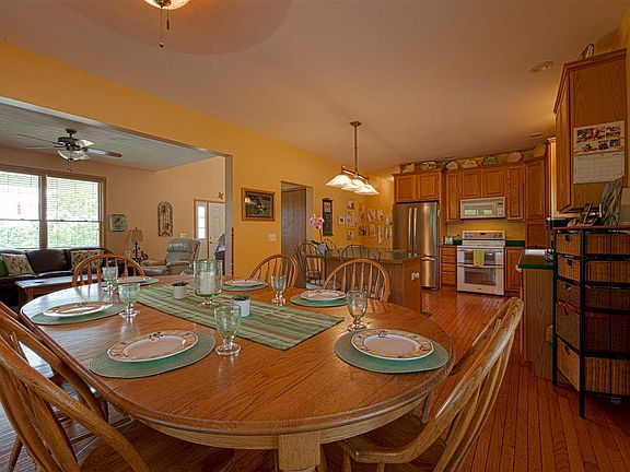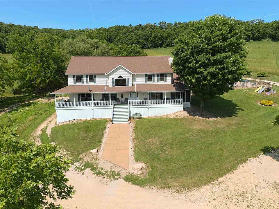 Build cherished memories with family and friends at this expansive 5,164 Sq Ft 6-bedroom, 4.5 bathroom country retreat. Located 2 hours west of Chicago near historic Galena, this property has everything needed to take a break from the crowds and noise of urban living. Enjoy the sounds of birds chirping as you hike 180 acres of wooded hills and open fields surrounding the house. Relish the quiet as you stroll the gardens or relax on the wrap-around deck. An outdoor pool, complete with slide and diving board, delivers hours of entertainment. The adjoining pool house stores pool equipment and provides an outdoor shower and restroom, as well as an attached screened-in porch for a break from the sun. An expansive deck with grill is the perfect location to sit and enjoy a morning coffee or drink around a firepit in the evening and a screened-in porch allows for outdoor dining. The main floor features an open kitchen with stainless steel appliances and is the perfect gathering space, either around the island or dining room table that comfortably seats 8 people. A living room and bonus great room offer plenty of space to spread out. The first-floor master suite includes a whirlpool tub. The second floor holds 3 bedrooms and 2 bathrooms. An enclosed loft area is the ultimate teen getaway with a tv lounge area. The lower level with radiant floor heat offers separate lockout living quarters, complete with a full-service kitchen, 2 bedrooms, 1 bathroom, a living/dining room, and separate game room. Pole barn includes a bouldering rock wall and space for all the toys needed to enjoy the outdoors! Home being sold partially furnished, Furniture list will be provided by Sellers within 12 days of accepted offer and will be transferred at closing with a separate bill of sale.