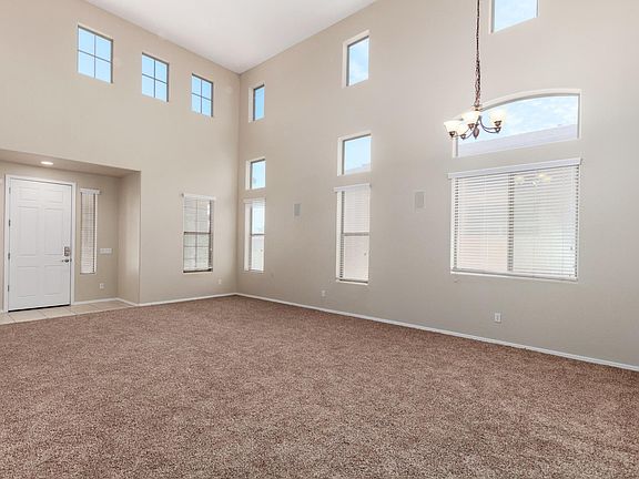 Gorgeous ultra clean Home in the desirable Community of Desert Valley. Rare 5 bedroom, 3 bath home w/great curb appeal & bordering the lush green common area. Home went thru a $35,000 remodel 3 years ago. $30,000 spent on 2 brand new, oversized HVAC units installed 2 months ago. Dramatic soaring ceilings, plush carpet, formal living/dining room, window blinds, ceiling fans, & cozy fireplace in family room. Spacious eat-in kitchen features a neutral tiled floor, center island, breakfast bar, pantry, SS appliances, pendant lighting, & plenty of wood cabinets. French doors to patio from breakfast area. Guest bedroom & bath on first level. Grand master retreat boasts double door entry, private ensuite w/dual sink, & walk-in closet. large laundry room w/sink & storage cabinets. MUST SEE!