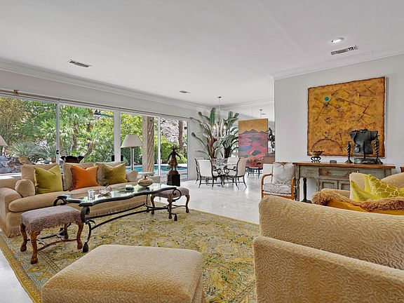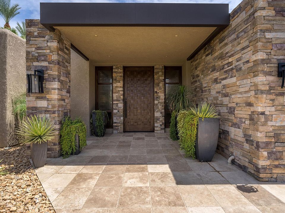 This elegant and bright contemporary style residence in Eldorado C.C. sits on a lush lot and has everything you need and more! Walking into the grand entryway thru a custom basket weave wood front door, into over 4,000 square feet of unique living space, you will be treated to an authentic European inspired home with large rooms and open spaces. Main rooms and patios have beautiful views of the lush backyard, sparkling pool and fountain. Custom window treatments, travertine tile and carpet throughout. The kitchen, open to the family room, is designed for easy prep, serve and entertaining and has a custom designed pantry, granite countertops, backsplash, stainless steel appliances, and views of dramatic hillside stone formations. The great room is open to the formal dining area and has high ceilings, crown molding and a cut stone fireplace flanked by custom built-in bookcases. There are four large bedrooms, all ensuite and five bathrooms making it perfect for a family compound. The Master bedroom suite overlooks the garden that provides a peaceful setting loaded with character. The 4th bedroom doubles as an office space, second master bedroom or game room. Elegant form, graceful function, and so much more.