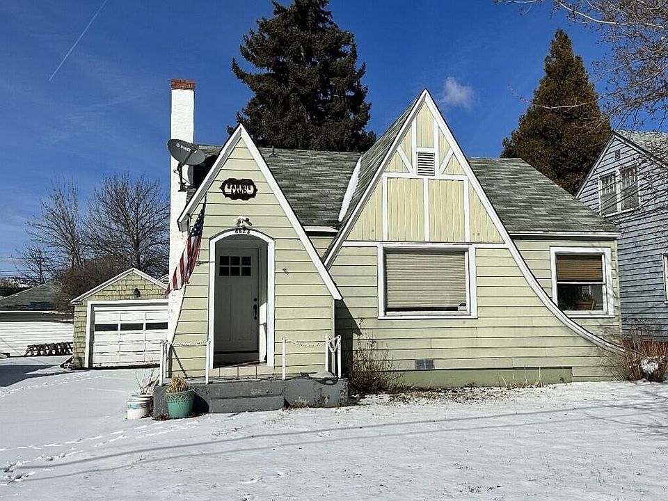 Must see! This cute cottage offers much more than meets the eye. 2 Bedroom, 1 Bath in the Suburbs with vintage charm, good bones and some useful updates. It's 970 sf, has a nice floor plan with wood floors throughout much of the home, a fireplace in the living room and heated with natural gas. Bathroom completely remodeled in 2023 with a walk-in shower and tile floors. Plenty of room to grow up... the large attic, may have bedroom, bathroom or flex space possibilities. A covered back porch leads out to the 1 car detached garage PLUS a 2 room outbuilding that has 220 power. Many potential uses; workshop, remote office, art room. The back yard is private and fenced with mature landscaping. Alley access too. Make your appointment today!