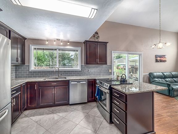 Rare 4-bedroom home in quiet West Eugene neighborhood; Master on main; Updated kitchen with stainless appliances and granite counter tops; Security camera system; Vaulted family room with wood burning fireplace; Fenced yard with deck, hot tub, apple and pear trees, mature blueberries, raised garden beds, water features, and powered tool shed; 2-car garage with washer/dryer hookup; Convenient access to schools, shopping, dining, and Beltline.