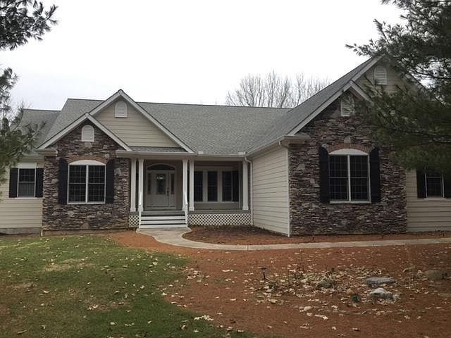 Escape to quiet country Custom Ranch 6.2Ac/Heavily Wooded w/white pines/fruit trees.Expert Craftsmanship Stone & Hardyboard exter.4BR/3Full Bath/Breathtaking Views.Front & Back Covered porches.Orig Owners thought of every detail.Gourmet Kitchen.FP Liv Rm. W/O in LL.First Creek runs on acreage. Garage has 220 volt hot&cold water. Pending Before Sent