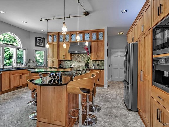 Impressive!! Secluded 5+ bed, 4.5 bath home on over 3 acres! Elevator & breathtaking formal movie theater: 6 power recliners, 13 channel Dolby Atmos sound system, 11.5 ft wide Cinemascope screen, snack bar & lighting. 10 ft. ceilings on main level. Gourmet kitchen: Granite counters, an abundance of Birch cabinetry w/pull-out drawers, top of the line MIELE appliances including built-in coffee/espresso maker, convection/steam oven w/commercial hood, wine chiller, etc. Dramatic living rm w/ marble FP flanked by walls of windows & lighted wet bar. Formal dining rm w/ hdwd floors. Den/sitting rm w/ yard views. Family rm. Office w/ 8 ft. french doors & remote blinds. 1st floor laundry rm & half bath. Upstairs offers a master ensuite: gas FP, walk-in closet & full bath. 3 additional bdms, 2 full baths & an AMAZING sewing / craft studio. Finished walk-out basement w/ brand new carpet offers an in-law apt OR just more room to entertain w/kitchen, living rm, bdrm (or 2) & a full bath! Elevator w/ access to all 3 floors AND garage (2015). Chandelier lift 2015. High eff. furnaces & AC units (2) 2014. Roof & Generator 2016. Shed (12X20) 2016. Stunning private grounds. This is a must see! 2022-03-04