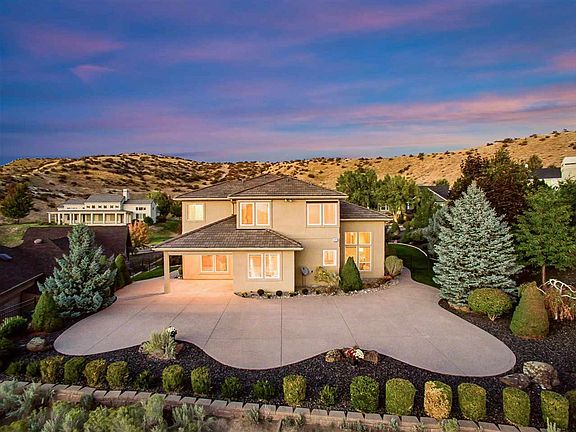 Estate home in coveted Highlands Hackberry, just minutes to trails & Boise's highest rated schools. Relax on the expansive patio overlooking sweeping views of downtown & the foothills or watch the sunset through the walls of windows lining the great room. Freshly refinished hardwoods extend throughout the entire home. Ideal for entertaining with a flowing layout, offering soaring ceilings, 2 master suites & 2 living spaces, office, & expansive kitchen w/double ovens.