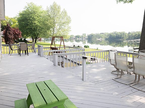 SUMMER IS FINALLY HERE! FULLY furnished lake home has everything it needs except you. Current owners are leaving everything, from linens and silverware to patio furniture and beach toys! This piece of property includes a second lot with a LARGE POLE Barn (40X55) 4 docks, 3 beds (that can sleep 8+ people) & 1.5 baths with 104 feet of lake front, an aeration system at the end of the dock, which keeps weeds at bay and provides a wonderful sandy beach to enjoy. There is a deck that is partially covered with a shade tree. With beautiful landscaping and lake views, walking into the home you are welcomed into a great room that opens onto the expansive sun porch with breath taking views of the lake. There is a half bath right off the back door, with an extra deep sink, perfect for bathing babies, grand babies, or pets. There is also a set stackable washer & dryer hidden in a beautiful hall closet. Kitchen has a dishwasher which is rare on the lake! will find 2 bedrooms off the living room with a full bath. The third bedroom is directly off the sunroom, this room was an addition and can be easily removed, if you would like a larger living room. French doors to the sunroom make it a great place to enjoy an evening playing cards while the kids are resting! Load friends and family and enjoy the summer in your very own fully furnished ready to play Lake front home! ** RESERVED ITEMS: JOHN DEERE EQUIPMENT, SAND RAIL. BOAT LIFT, GATOR, PONTOON & TRAILER, BOATS, SMOKER IN BARN. BUNK BEDS *** Parcel 1 ID:30-10-055-001 Parcel ID 2: 30-10-065-001-008